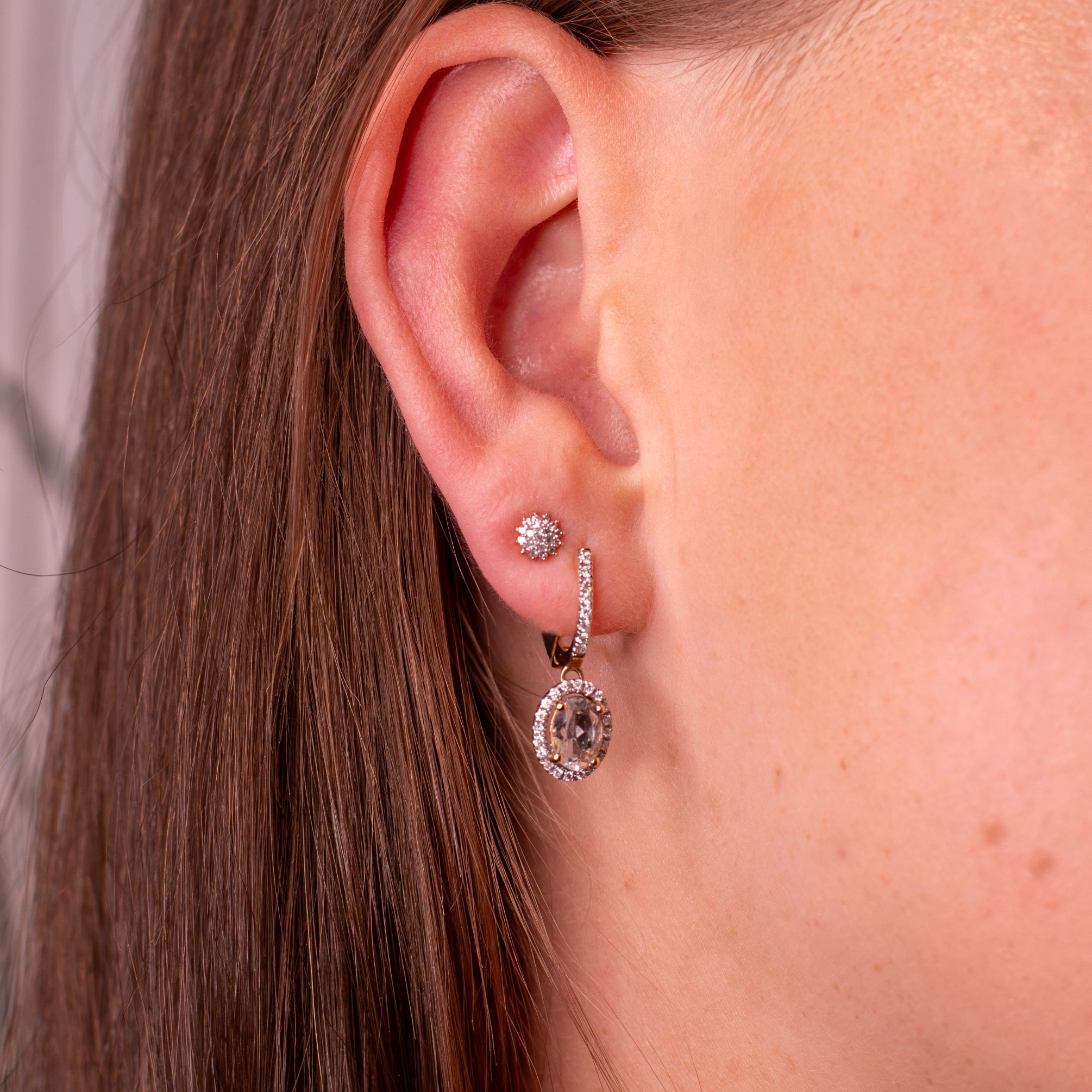 Diamantøredobber rosett i Hvitt/Gult Gull, 0.12ct TW Si
