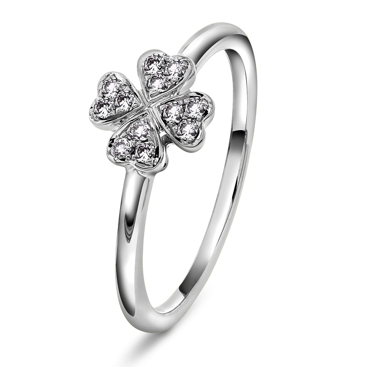En elegant diamantring med et unikt og lekent preg. Den klassiske ringskinnen, tilgjengelig i både gult og hvitt gull, bærer et firkløverdesign med gnistrende diamanter som gir ringen både karakter og sjarm. De hjerteformede bladene skaper et subtilt romantisk uttrykk, samtidig som formen skiller seg ut på en diskret og stilfull måte. Et vakkert valg til deg som vil ha et smykke med mening – enten som gave, personlig symbol eller et tilskudd til smykkeskrinet.