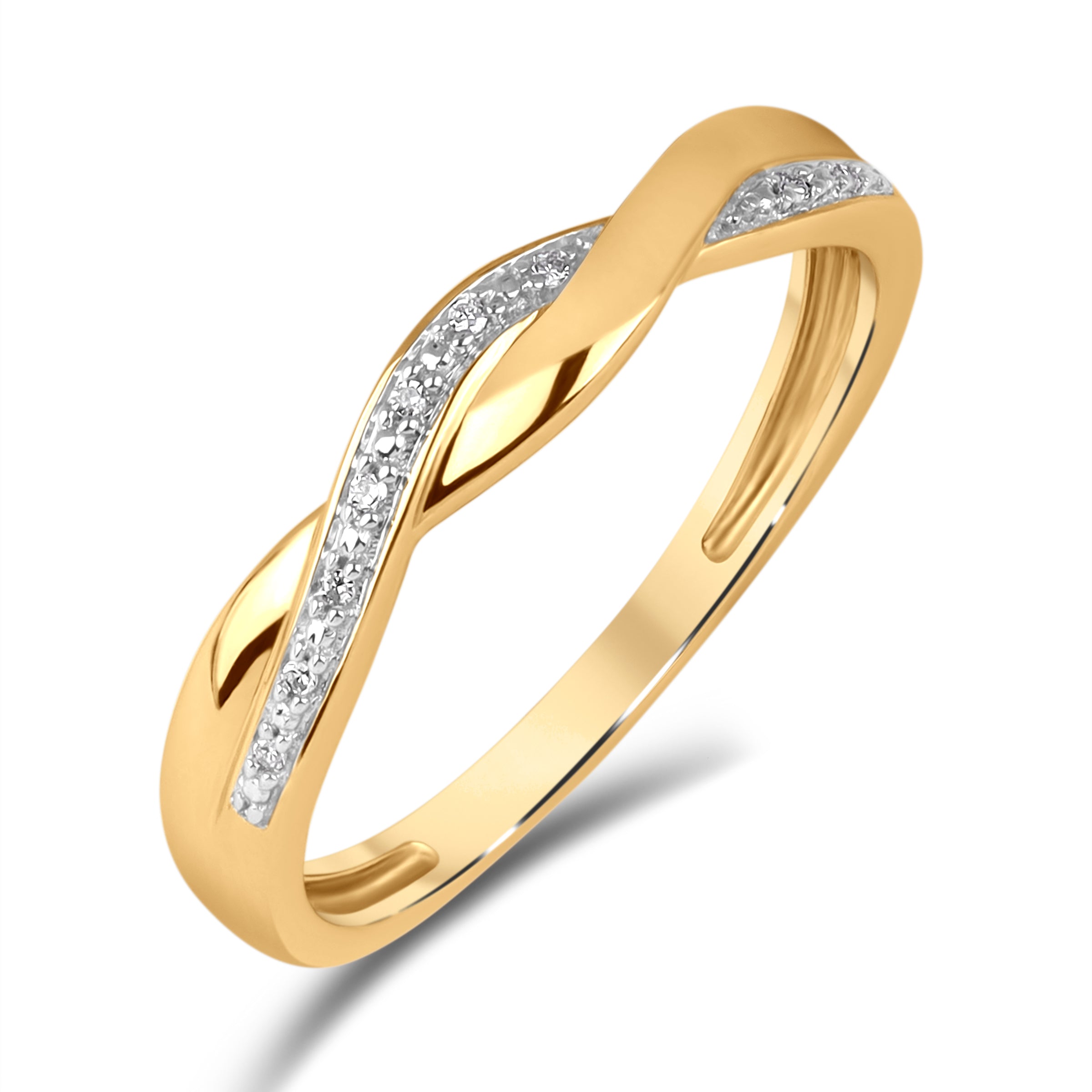 Et lekkert valg for deg som ønsker noe delikat og personlig. Denne diamantringen har et lett vridd design som skaper bevegelse og liv, mens små diamanter gir en diskret glans. En allsidig ring som glir sømløst inn i både hverdagsbruk og festlige øyeblikk. Finnes i gult eller hvitt gull.