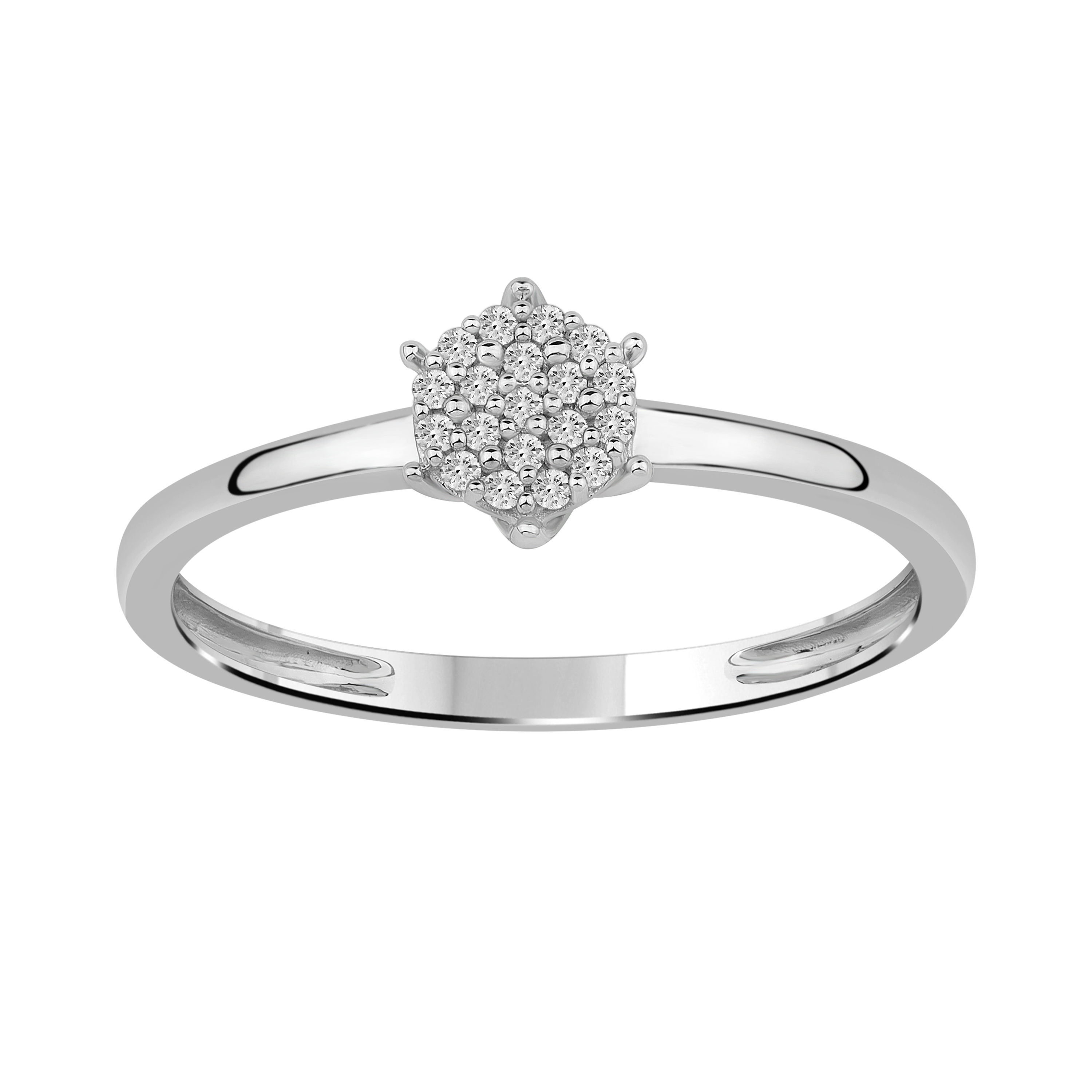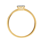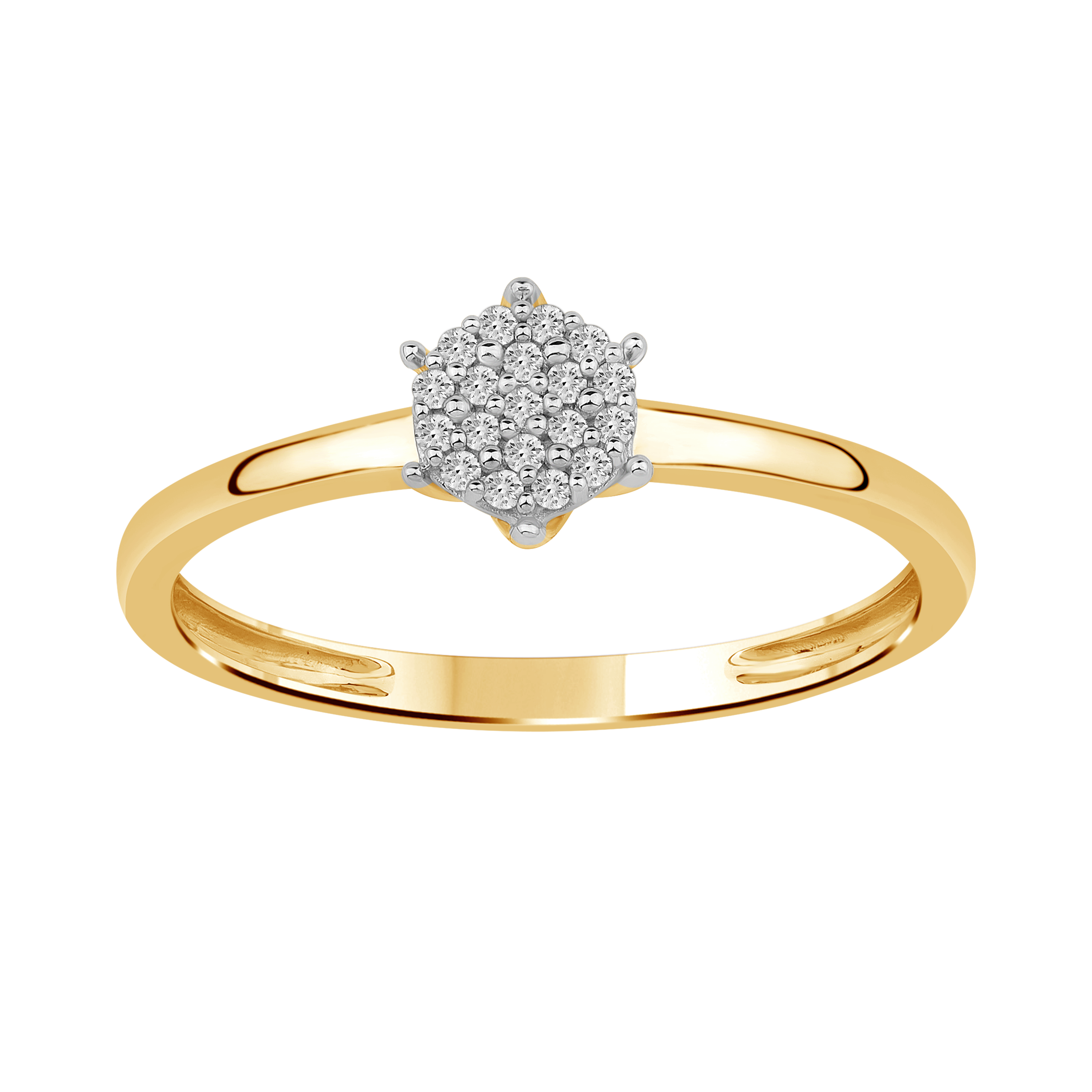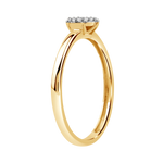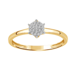 Denne diamantringen kombinerer klassisk rosettdesign med et moderne og stramt uttrykk. Midtfeltet består av flere små diamanter satt tett i sirkel, noe som gir et helhetlig og livlig spill i lyset. Ringen har en ren og avrundet skinne som gjør den behagelig å bruke til hverdags. Tilgjengelig i både gult og hvitt gull.