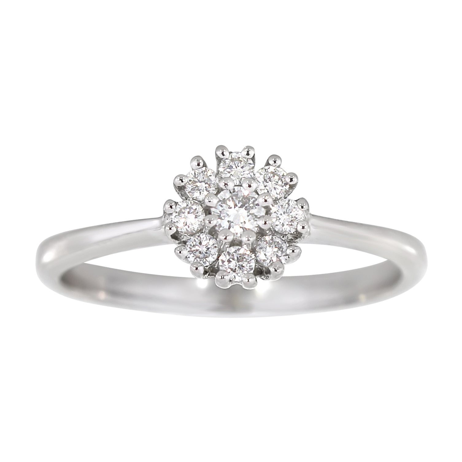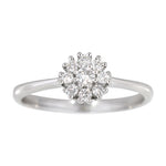 Delikat ring i 14 karat hvitt gull med en nydelig blomstermønstret krans av diamanter på totalt 0.22 ct. De briljantslipte diamantene er satt tett sammen og danner et glitrende midtpunkt med elegant og tidløs utstråling.