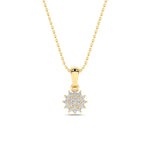 Tidløst anheng i ditt valg av hvitt eller gult gull, vakkert dekorert med 0.06 ct glitrende diamanter. De briljante stenene er arrangert i et raffinert rosettfatning som gir smykket et elegant og delikat uttrykk. Perfekt for deg som ønsker et subtilt, men luksuriøst tilskudd til både hverdagsantrekk og mer formelle anledninger. Et allsidig smykke som enkelt kan kombineres med andre favoritter i smykkeskrinet.