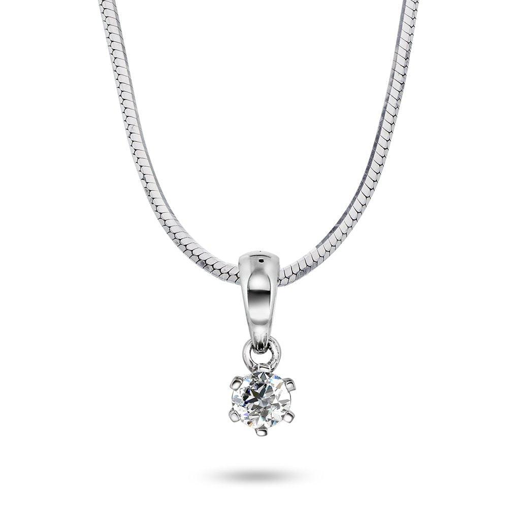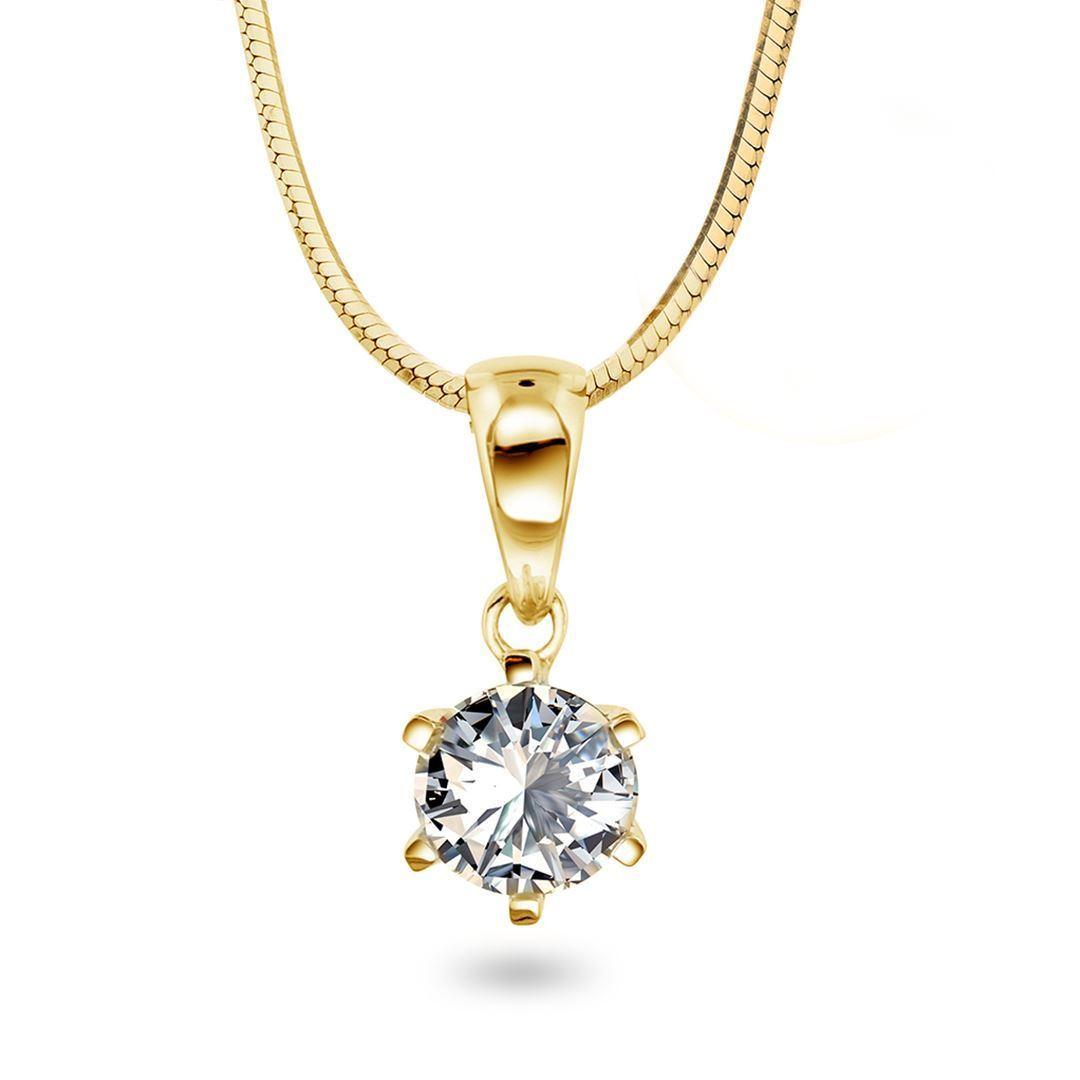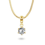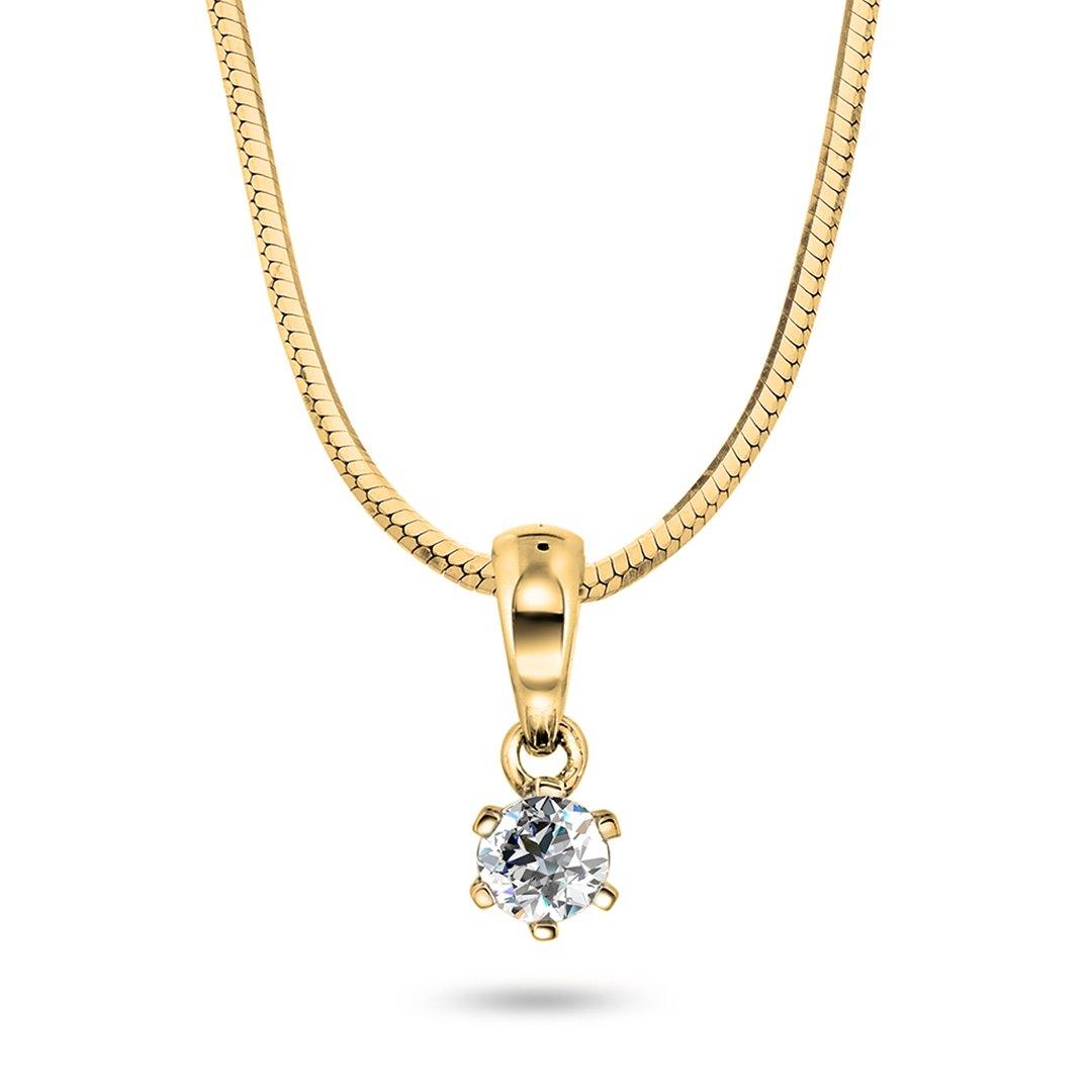 Tidløst anheng i 14 karat gult gull med en strålende diamant innfattet i klassisk seks griffinnfatning. Diamanten kan velges fra 0.07 ct til hele 1.00 ct, slik at du finner den perfekte størrelsen for enhver anledning. Anhenget er en del av enstens diamantsamlingen til  "HeleneV", vårt eget merke og kombinerer sofistikert design med utsøkt kvalitet. Et smykke som gir et eksklusivt uttrykk og passer like godt til hverdags som til fest.