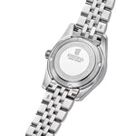 Festina F20087-1 er en stilren dameklokke i rustfritt stål med perlemorsskive og rillet bezel som gir et markert og klassisk uttrykk. De dekorative timemarkeringene tilfører et raffinert preg, mens safirglass beskytter mot riper i daglig bruk. Klokken drives av et presist quartz-urverk og er produsert etter Swiss Made-standard. Med 5 ATM vanntetthet og en diameter på 29 mm kombinerer denne Festina-klokken tydelig design med pålitelig funksjonalitet.