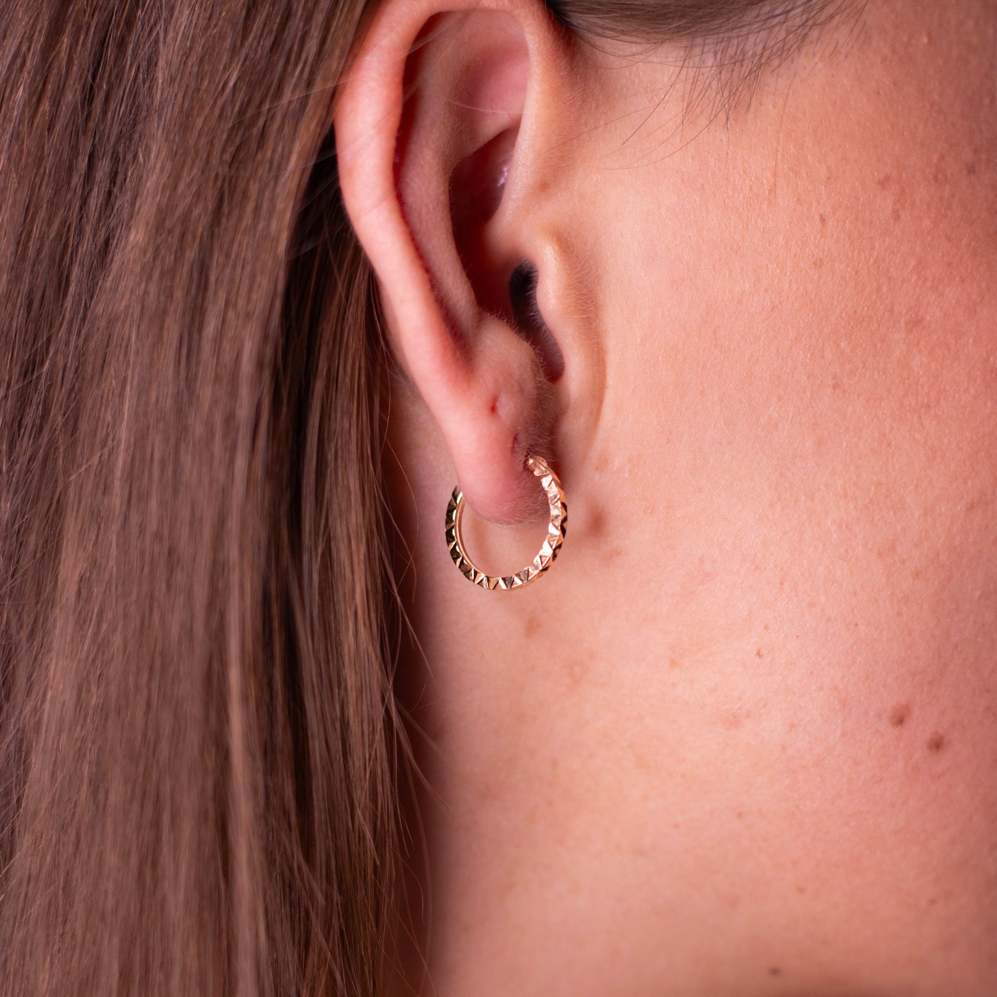Gullørepynt i 14kt Gult Gull (585) - Creoler m. Geometrisk mønster - 12mm