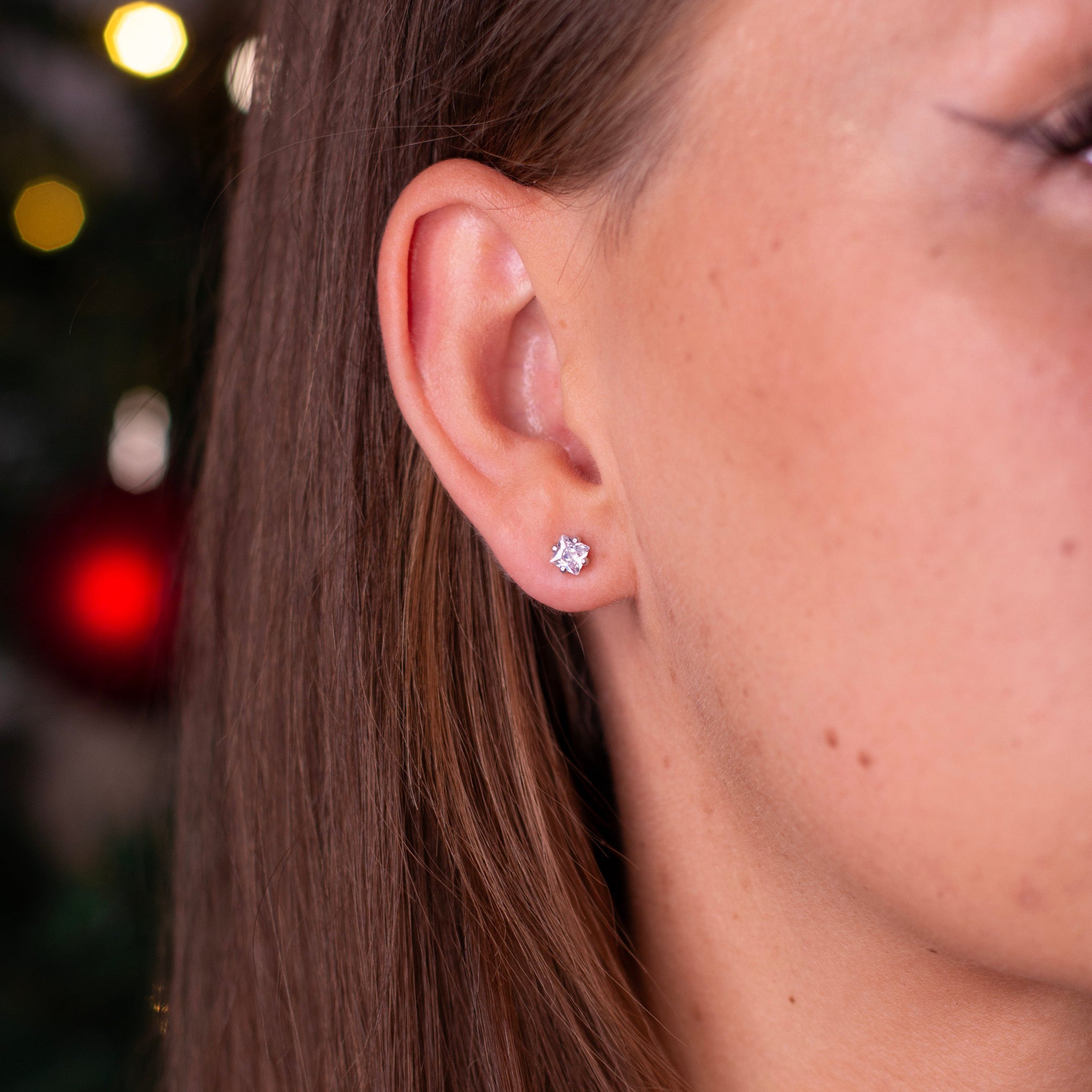 Gullørepynt i 14kt Hvitt Gull (585) - Kubisk Zirkonia