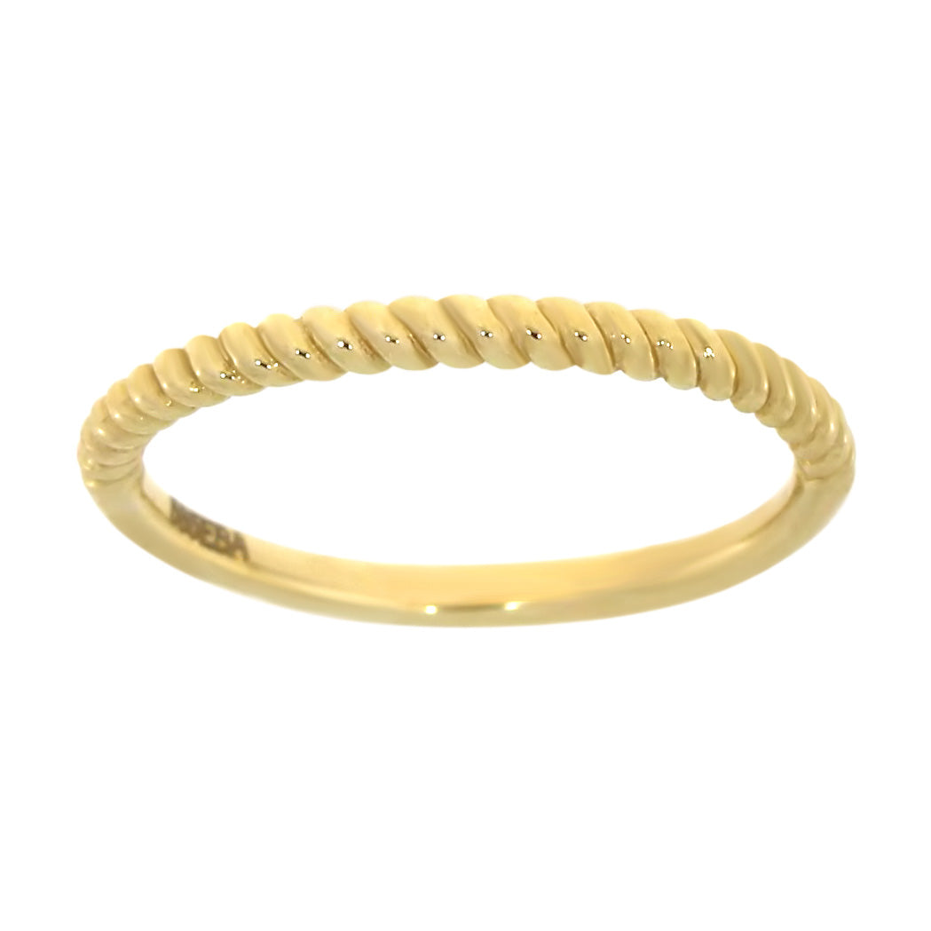Elegant ring i 14 karat gull med et tvunnet design som gir en raffinert og moderne effekt. Den stilrene formen gjør den ideell både alene og som del av en ringstack. Perfekt for deg som ønsker et tidløst gullsmykke med diskret særpreg og høy kvalitet i håndverket.
