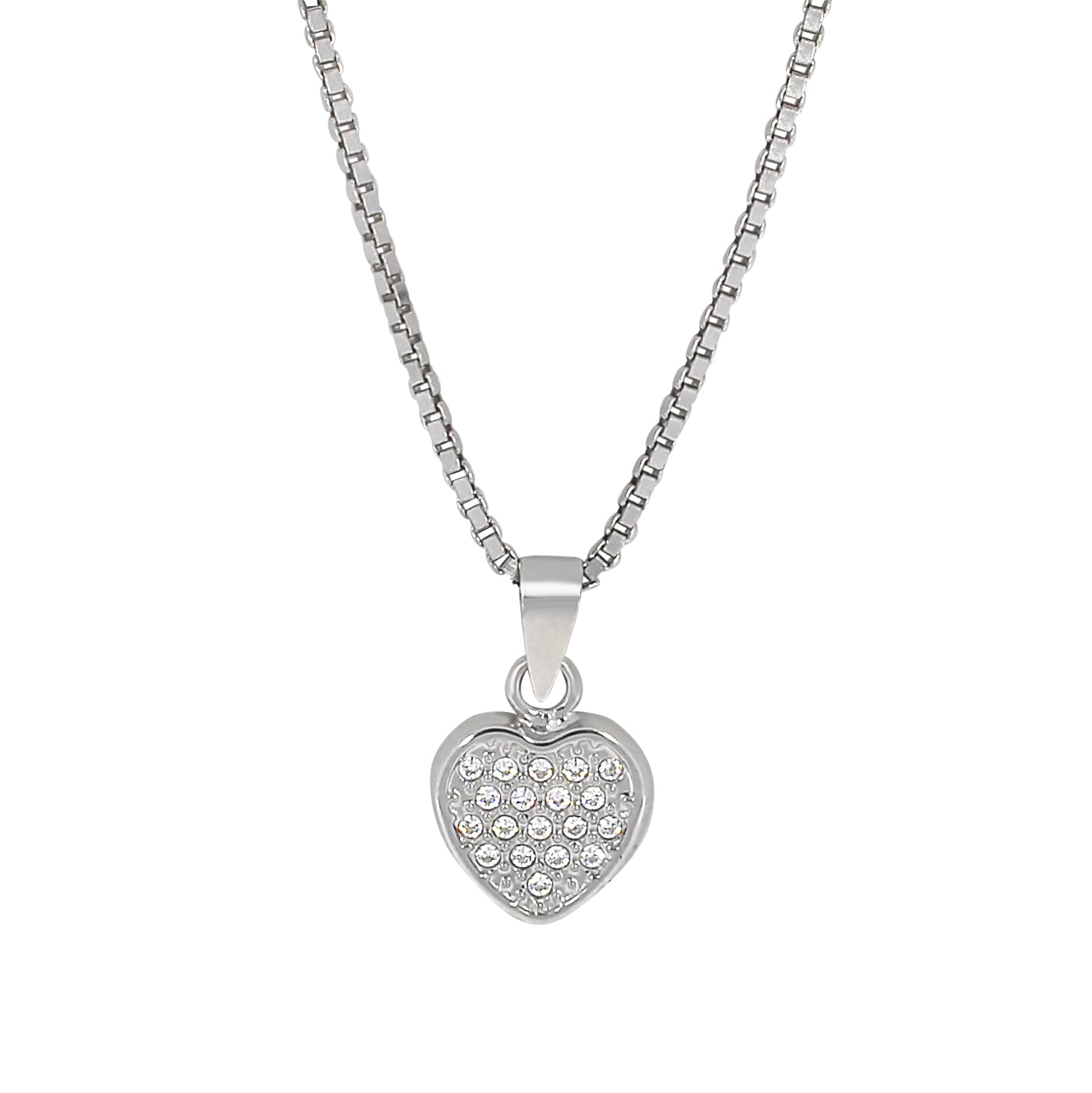 Delikat anheng i forgylt eller rhodinert sølv med et hjerteformet design prydet med glitrende hvite zirkonia. Den bøyde formen gir smykket en myk og elegant fremtoning, mens de små stjernene av zirkonia lyser opp hjertets overflate med diskret luksus. Et tidløst smykke som kombinerer følelse og finesse i én og samme detalj.