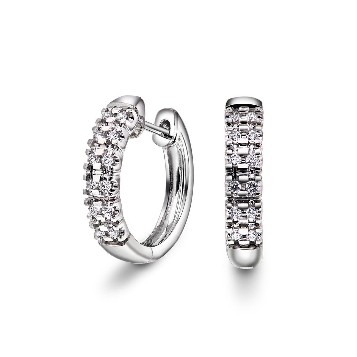 Tidløs diamantørepynt i 14 karat gult eller hvitt gull, utsmykket med brillantslipte diamanter på totalt 0.24 ct TW/SI. De avrundede creolene er utformet med tre glitrende diamantrekker som tilfører dybde og strålende eleganse til designet. Det speilblanke gullet fremhever hver enkelt sten og gir smykket et harmonisk og luksuriøst uttrykk. Presisjon i innfatningen og den kompakte formen sikrer både visuell balanse og komfort i bruk.