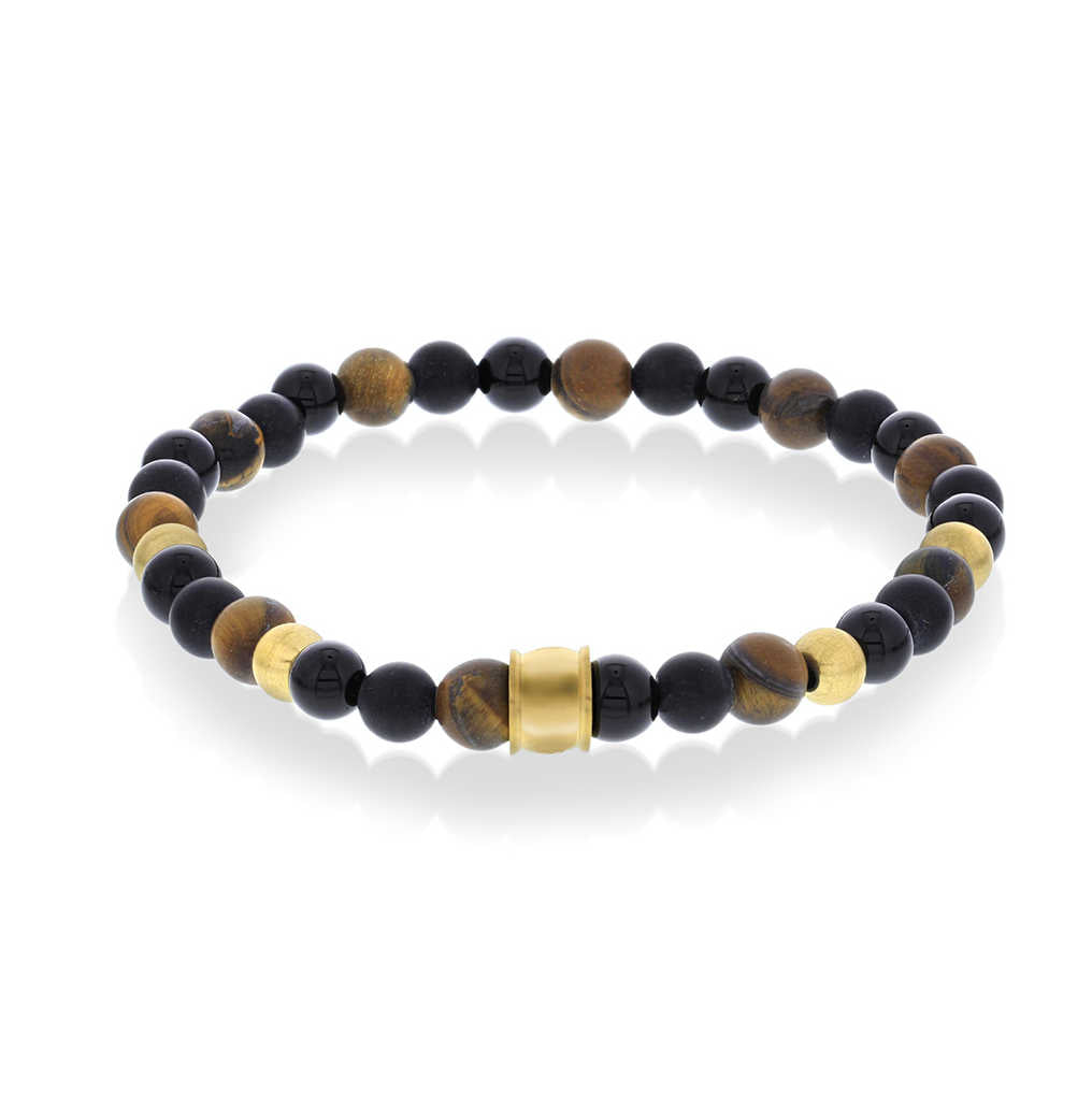 Herrearmbånd i stål med agat og tigerøye