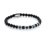 Stilig armbånd med matte kuler i sort agat, kombinert med blanke ståldetaljer og glansfulle innslag i mørk grått. Det elastiske designet gir høy komfort, mens den solide stållåsen sikrer et varig og brukervennlig feste. Fargekontrasten gir smykket et balansert og moderne uttrykk.