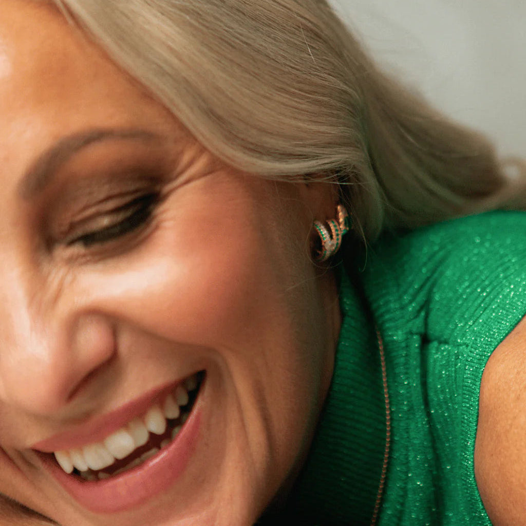 Shabana-øredobbene bærer et sterkt symbolsk budskap, inspirert av en kvinne som brukte sin stemme med mot og lidenskap for å kjempe mot urettferdighet. Designet speiler dette motet – det klare, strålende utseendet minner oss om hvordan sannheten og styrken alltid skinner gjennom, selv i møte med de største utfordringene. Disse øredobbene er en hyllest til en kvinne som brøt barrierer og satte dype spor.