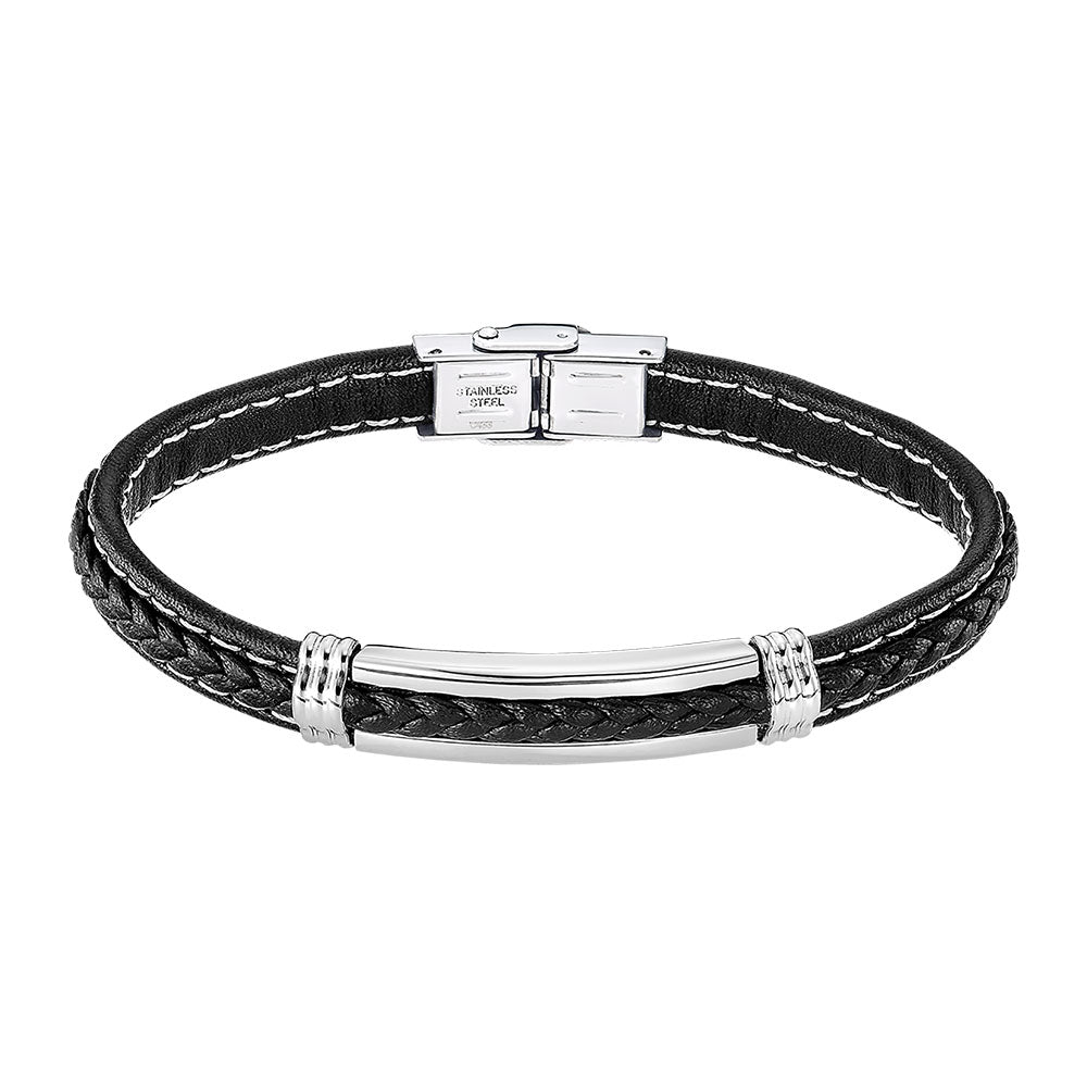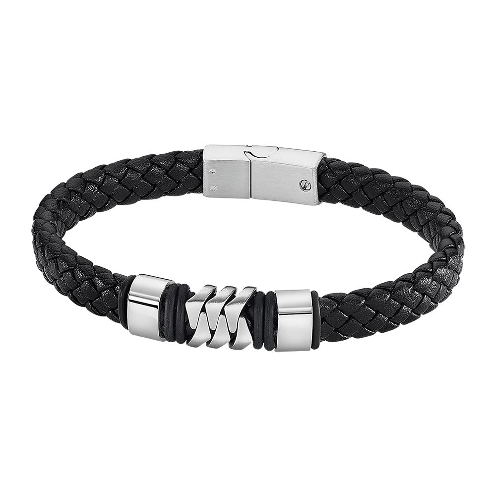 Lotus Style Armbånd i Skinn og Rustfritt Stål - Sort, 8mm
