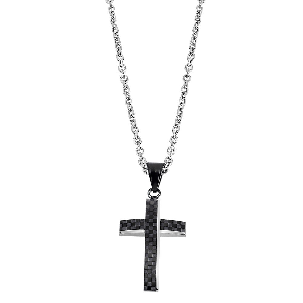 Lotus Style Anheng med Kjede i Rustfritt Stål - Dog tag, Svart Tekstur, 18x32mm