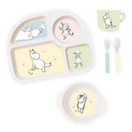 Dette vakre serviset med motiver fra Mummitrollets univers vil gjøre ethvert måltid litt morsommere for barna. Dette serviset gir en perfekt start når den lille skal begynne å spise selv. Innholder tallerken med 4 rom, bolle, kopp og 2 skjeer. Kan vaskes i oppvaskmaskin. Ikke til bruk i mikrobølgeovn.