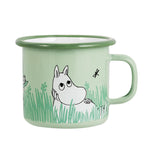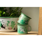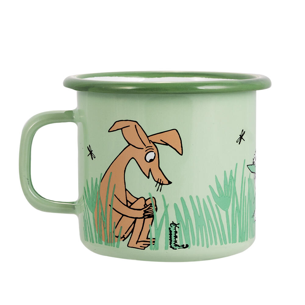 Emaljekoppen har en myk kantovergang for å skape en behagelig overflate å drikke fra. Emaljekoppen er godkjent for bruk på komfyr, induksjonsplate, ovnen og i oppvaskmaskin. Ikke godkjent for bruk i mikrobølgeovn.
