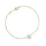 Delikat armbånd i gult gull med en elegant ferskvannsperle på 6–6.5 mm som senterpunkt. Den fine ankerlenken skaper et lett og raffinert uttrykk, perfekt for både hverdagsbruk og spesielle anledninger. Perlen fremstår med en nydelig glød og silkemyk overflate, og tilfører armbåndet et tidløst preg. Gullkjeden gir en subtil kontrast som fremhever perlen på elegant vis.
