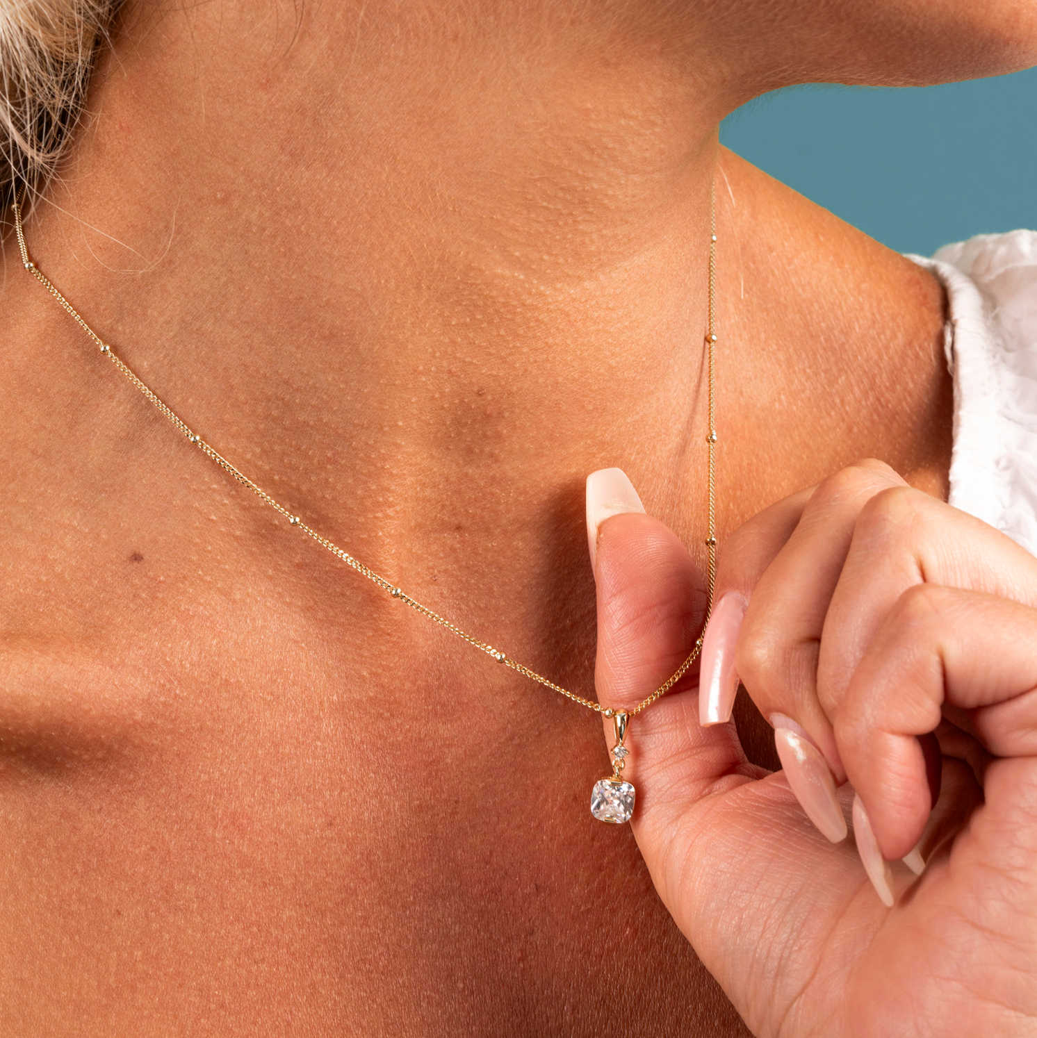 Et sofistikert halskjede i sølv med et elegant anheng utsmykket med en strålende zirkoniasten. Den delikate lenken med små detaljer gir smykket et moderne preg, perfekt for både hverdagsbruk og spesielle anledninger. Et tidløst tilbehør som tilfører eleganse til ethvert antrekk.