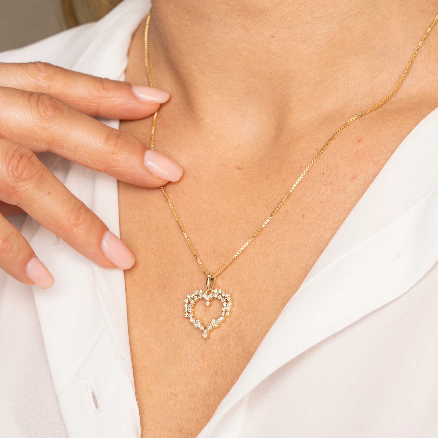Hjertesmykke i forgylt sølv med Zirkonia - Pan Jewelry