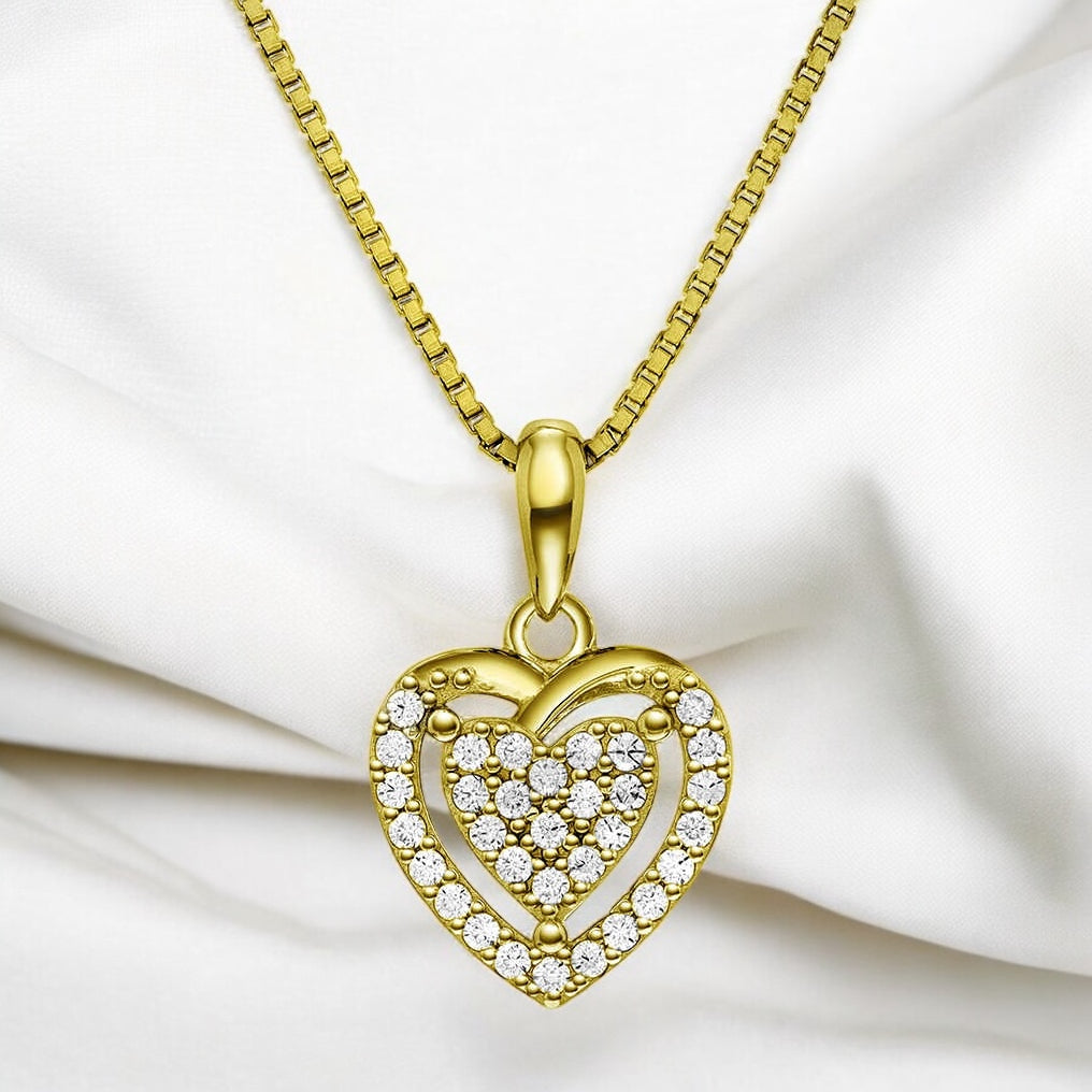 Hjertesmykke i forgylt sølv (925) med Zirkonia - Pan Jewelry