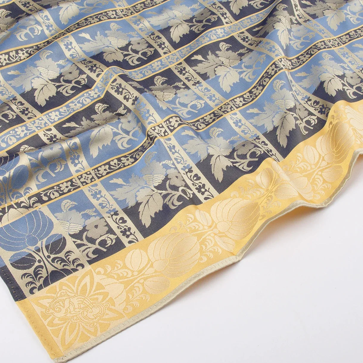 Silkesjerf av 100 % silke til bunad og festdrakter. Dette elegante silkeskjerfet kombinerer tradisjon og luksus, med et detaljert mønster som fremhever de klassiske norske designelementene. Perfekt tilbehør for å komplementere både bunad og andre festdrakter, og det gir et sofistikert preg til antrekket ditt.
