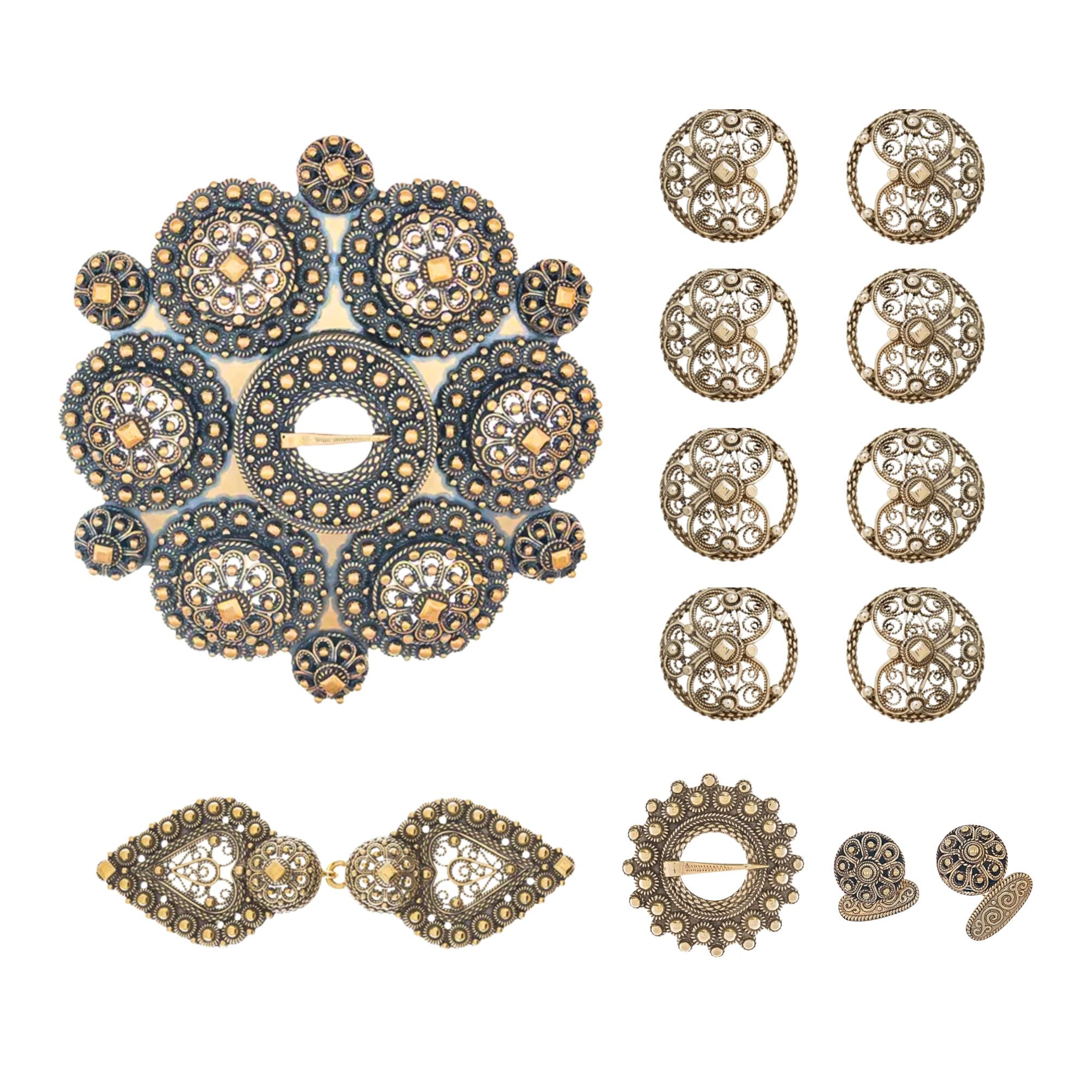 Komplett bunadspakke til Telemarksbunad med maljer, nøye sammensatt for et rikt og tradisjonsforankret uttrykk. Pakken inneholder sentrale sølvdeler til bunaden – blant annet sølje, maljer, beltespenne, halssølje og mansjettknapper – slik at antrekket fremstår helhetlig og gjennomført.